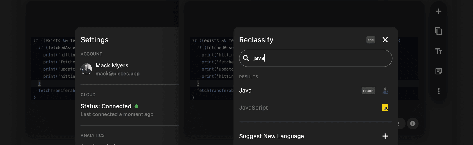 Just as importantly, today’s release marks the first introduction of our Cloud features! Pieces is disconnected from the cloud by default for your privacy, but now you can easily connect to the cloud to enable upcoming features such as backup, sync, sharing and more.