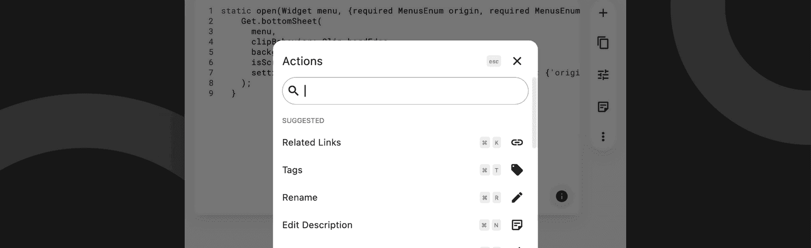 [New Feature] Actions Menu - inspired by many modern tools like Superhuman, this is a simple, searchable menu where users can surface and trigger actions in the app. Just hit ⌘+return on MacOS or Ctrl+Enter on Windows to pull up the Actions menu.