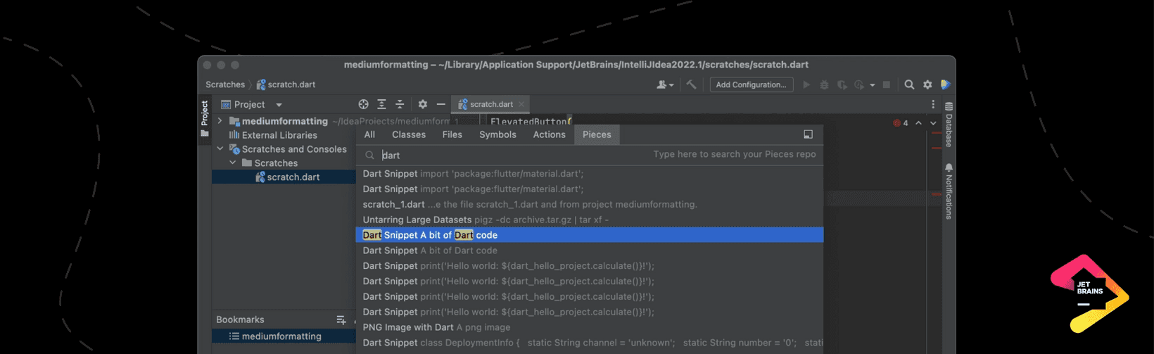 Today we’re excited to release Search Everywhere for the JetBrains suite. This feature gives you three ways to find and insert snippets from Pieces.