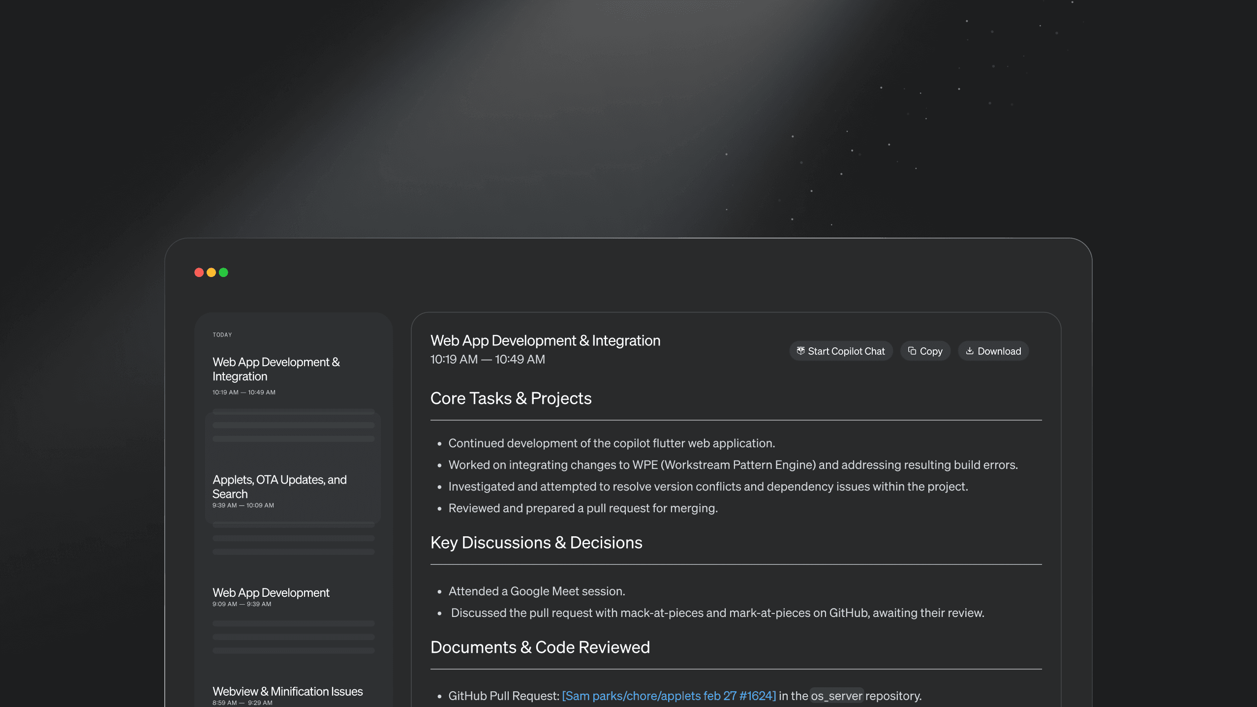 Now, instead of juggling multiple chats or searching through scattered notes, you can rely on one unified, comprehensive snapshot of your workflow.