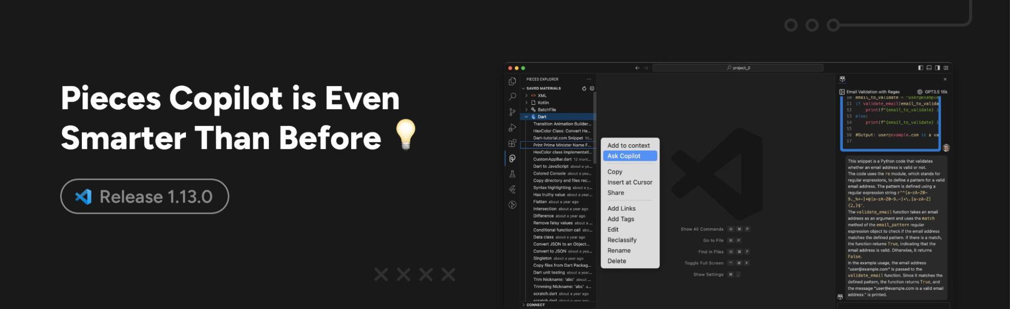 Pieces Copilot is one of our favorite and most-used features in the Pieces Suite. This release includes a number of updates to your Pieces Copilot experience to make sure that you get the best possible answers to your coding questions.