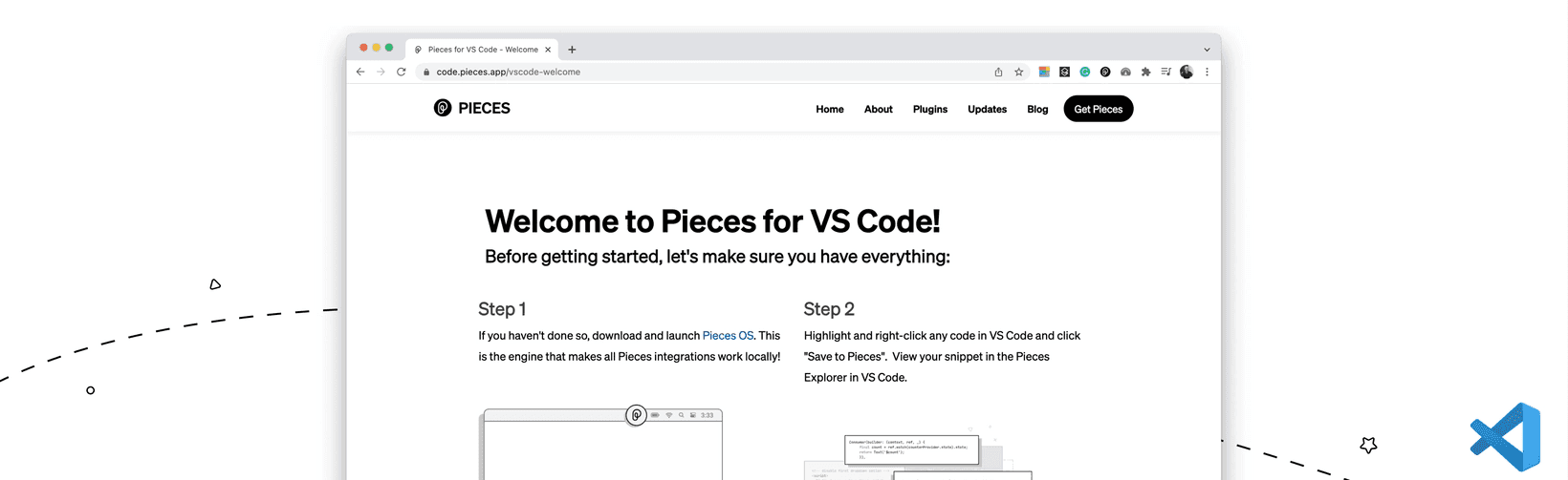 One thing we’ve noticed is that many new users go straight to the VS Code (or Jetbrains) plugins on our site or in the VS Code marketplace and install the plugin without Pieces OS installed.