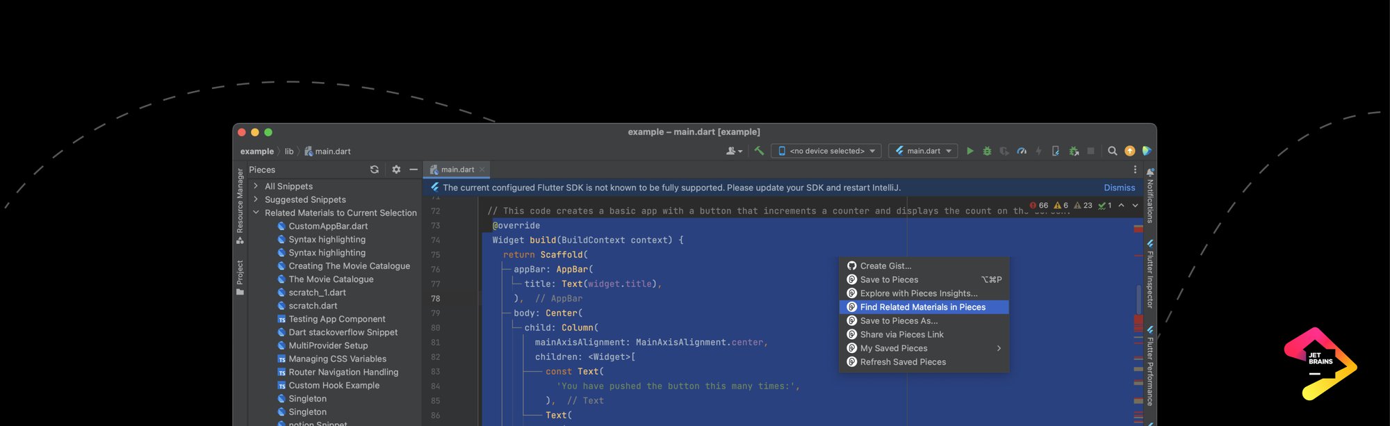 Find related materials to your current project in a snap with the latest feature in the Pieces for JetBrains plugin. All that and more in today's release.