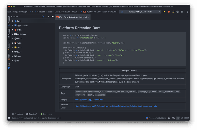 Save to Pieces As, Git History, Dart CLI tutorials and More